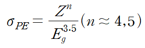 표현되며, 좌변은 광전자의 흡수단면적으로서 전체적으로 광전효과는 원자번호가 클수록 확률이 증가하고, 전자기방사선의 에너지가 커짐에 따라 확률이 감소.