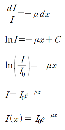 감마선을 포함한 방사선이 물질속에 들어갈수록 여러반응들에 의해 점차 에너지를 잃고 소멸하게 되면서, 에너지가 흡수되는 비율은 물질의 두께dx에 비례, 비어-람베르트 법칙(La loi de Beer-Lambert, 매질의 성질과 감쇠현상에 대한 법칙)을 적용시키면,