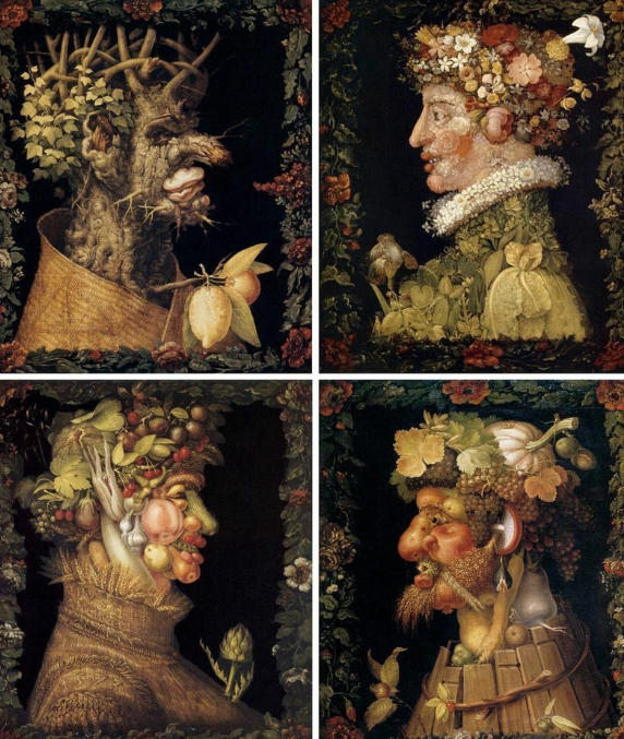 막시밀리안2세와 동갑내기 화가인 주세페 아르침볼도(둘다 1527년생)는 원래 페르디난트1세 때부터 눈에 띄어 들어오게된 이탈리아출신 화가인데, 독특하고 독창적인 작품해석(과일, 꽃, 동물, 사물등을 이용한 사람표현방식)과 해박한 지식등으로 궁정화가로 삼았던 페르디난트1세였기에, 아르침볼도는 1593년 당시 황제 루돌프2세(Rodolphe II, 1552~1612, 재위1576~1612)에 이르기까지 3대에 걸친 궁정화가로 일하면서 합스부르크에 봉사한다. 특히 막시밀리안2세가 오스만제국과의 굴욕적인 조약체결로 인해 권위가 떨어진 상태에서 아르침볼도에게 자신의 초상화를 그리라고 지시하는데, 보통 화가였으면 사람이 보이는 모습 그대로 그렸을 것인데, 상당히 특이한 기법으로 그린다. 아래 작품은 막시밀리안2세의 초상화는아니고 사계절(봄, 여름, 가을, 겨울)을 표현한 작품인데 대충 이런방식으로 사람을 그렸다고 보면 된다.